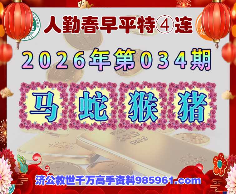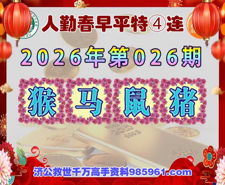 026期:『人勤春早』 😜平特④连😜【猴马鼠猪】开:猴34,马24,鼠42,猪19准