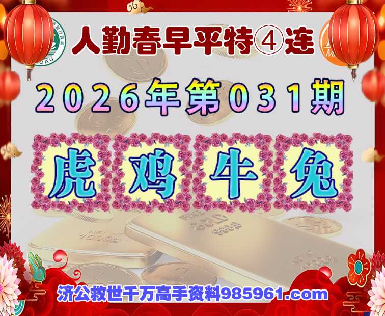 031期:『人勤春早』 😜平特④连😜【虎鸡牛兔】开:龙26错