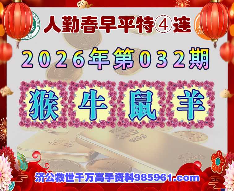 032期:『人勤春早』 😜平特④连😜【猴牛鼠羊】开:猴10,牛17,鼠06,羊23准