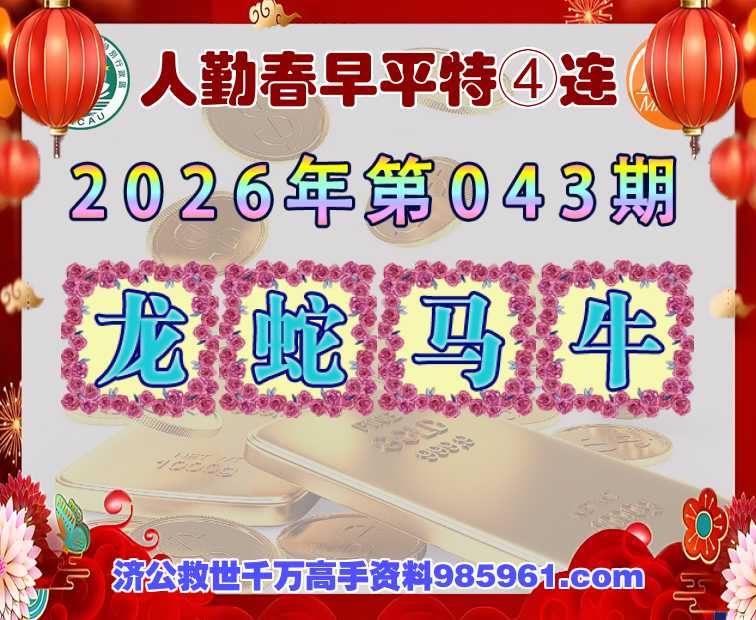 043期:『人勤春早』 😜平特④连😜【龙蛇马牛】开:蛇13错