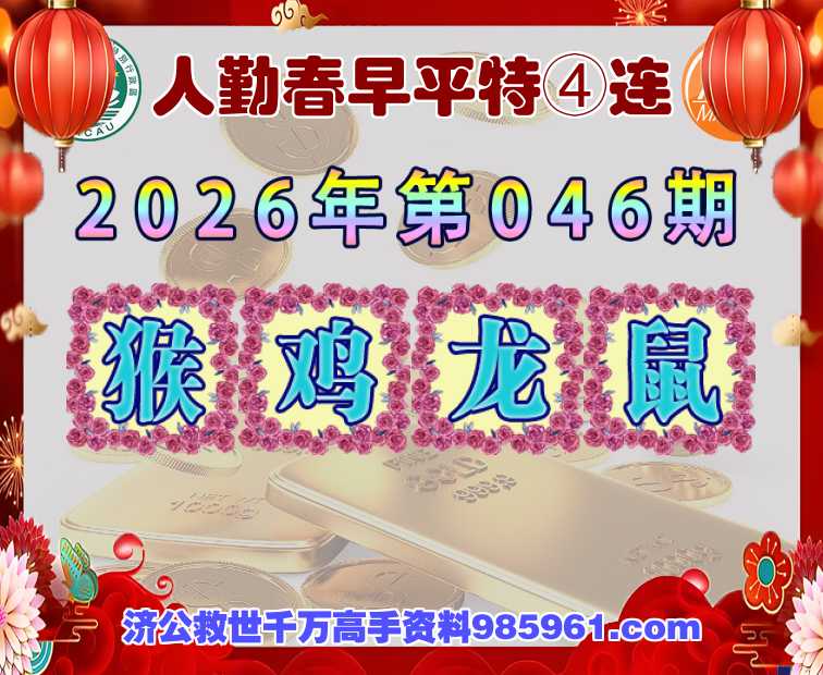 046期:『人勤春早』 😜平特④连😜【猴鸡龙鼠】开:兔03错