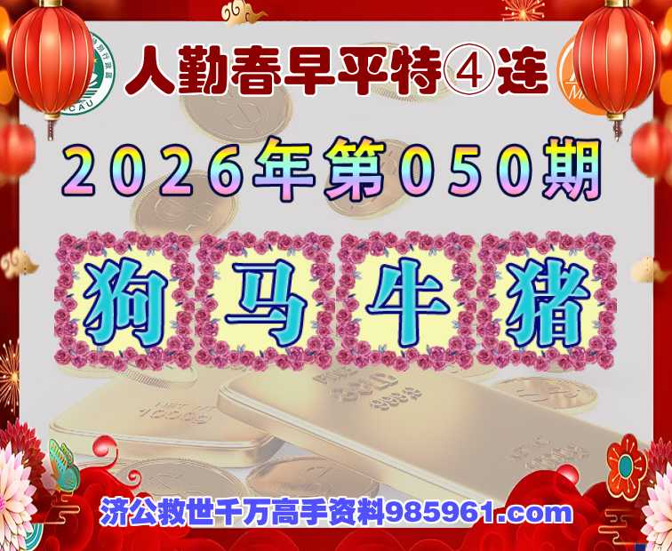 050期:『人勤春早』 😜平特④连😜【狗马牛猪】开:狗33,马13,牛30,猪44准