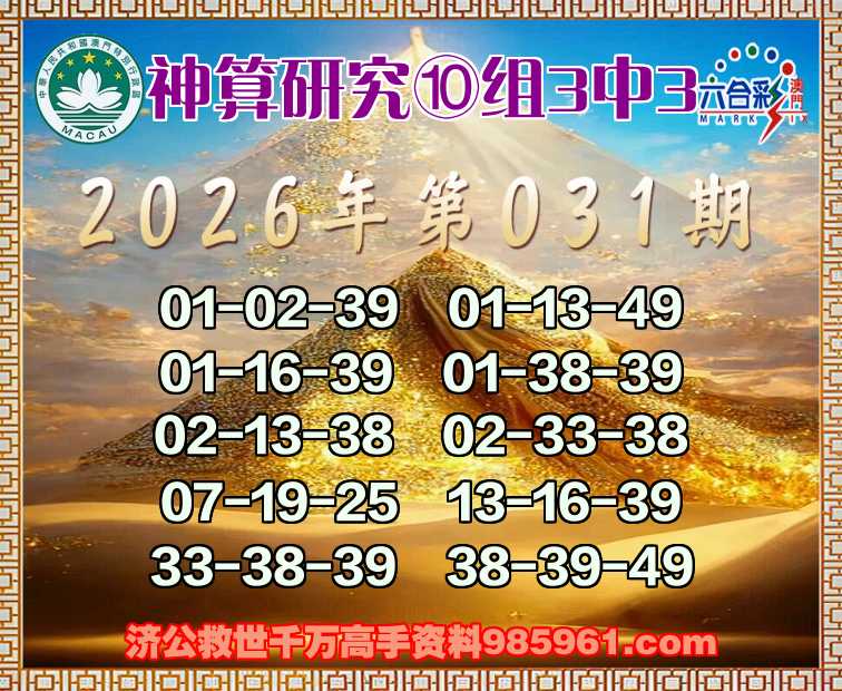 026期:『神算研究』 ♦️⑩组3中3♦️