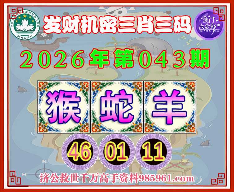 043期:『发财机密』 🚲三肖三码🚲【猴蛇羊】【46.01.11】开:蛇13准