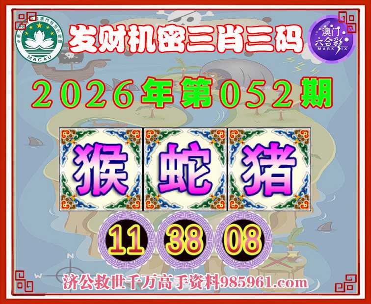 052期:『发财机密』 🚲三肖三码🚲【猴蛇猪】【11.38.08】开:蛇38准