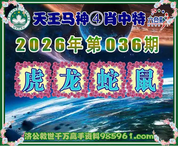 036期:『天王马神』 💎④肖中特💎【虎.龙.蛇.鼠】开:蛇01准