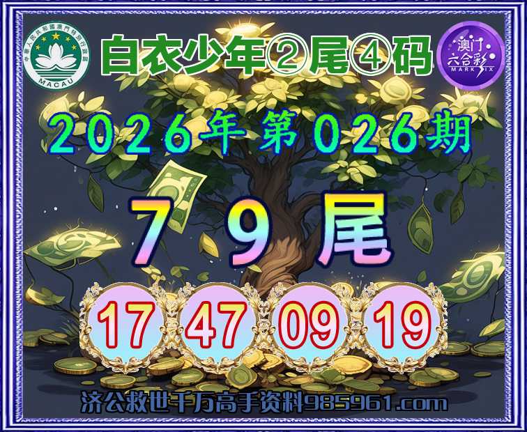 026期: 白衣少年 🧏♀️②尾④码🧏♀️【79尾主:17.47.09.19】开:19准