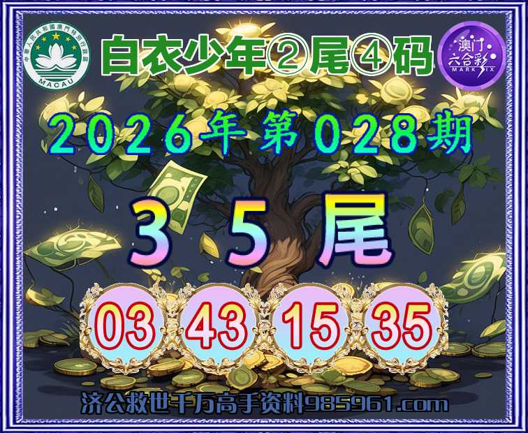 028期: 白衣少年 🧏♀️②尾④码🧏♀️【35尾主:03.43.15.35】开:03准