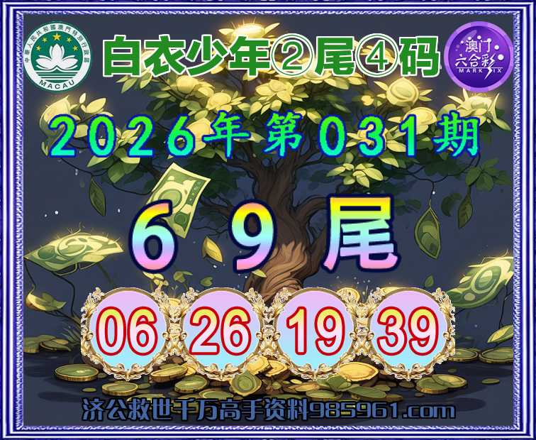031期: 白衣少年 🧏♀️②尾④码🧏♀️【69尾主:06.26.19.39】开:26准