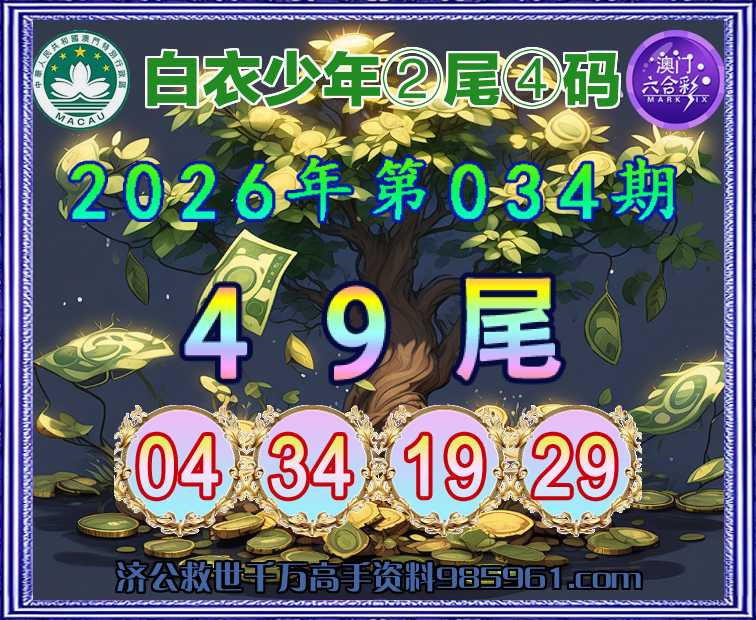 034期: 白衣少年 🧏♀️②尾④码🧏♀️【49尾主:04.34.19.29】开:19准