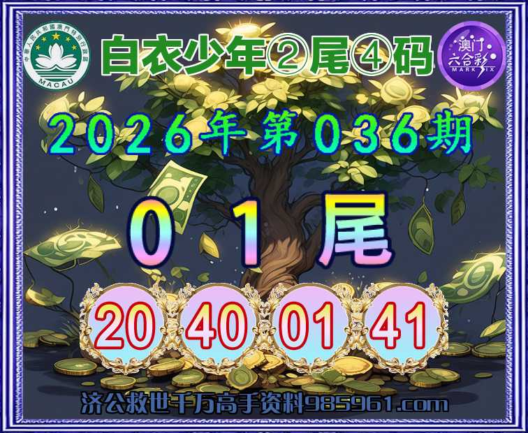 036期: 白衣少年 🧏♀️②尾④码🧏♀️【01尾主:20.40.01.41】开:01准