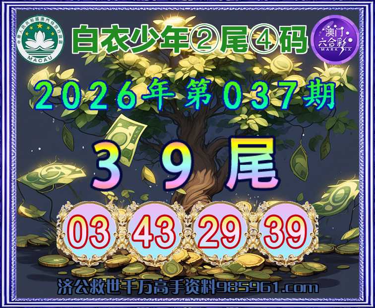 037期: 白衣少年 🧏♀️②尾④码🧏♀️【39尾主:03.43.29.39】开:43准