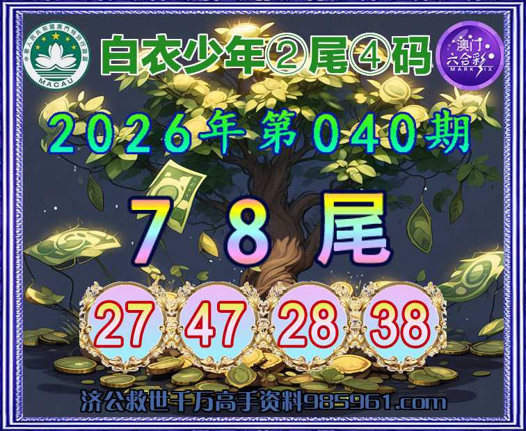 040期: 白衣少年 🧏♀️②尾④码🧏♀️【78尾主:27.47.28.38】开:28准
