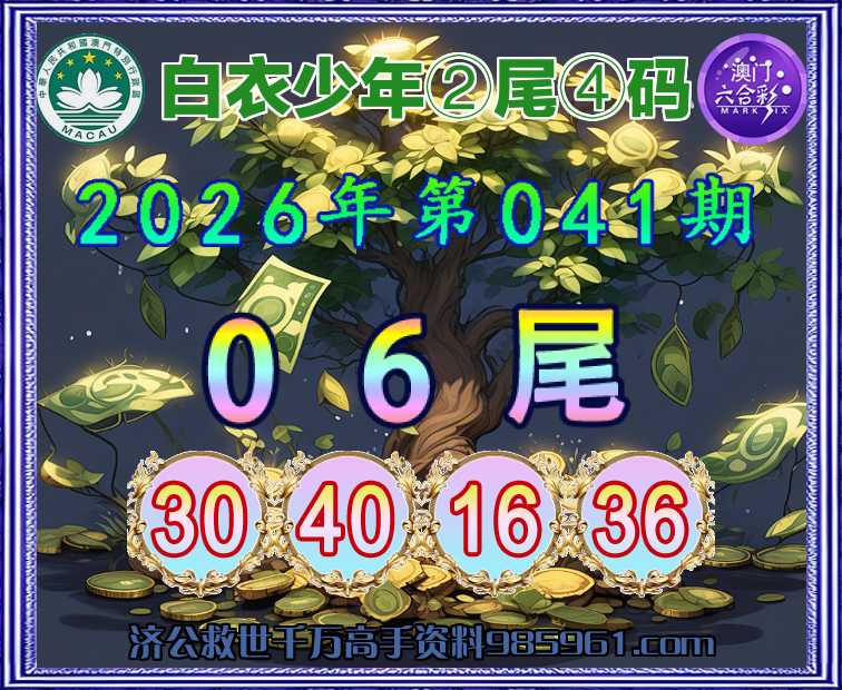 041期: 白衣少年 🧏♀️②尾④码🧏♀️【06尾主:30.40.16.36】开:36准