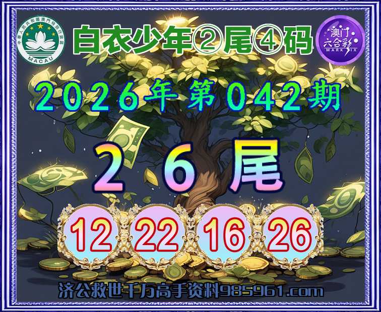 042期: 白衣少年 🧏♀️②尾④码🧏♀️【26尾主:12.22.16.26】开:16准
