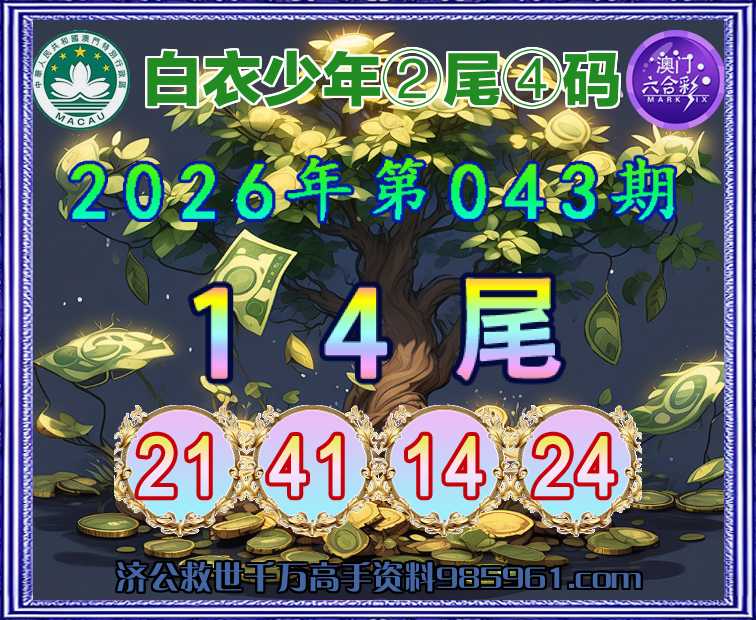 043期: 白衣少年 🧏♀️②尾④码🧏♀️【14尾主:21.41.14.24】开:13错