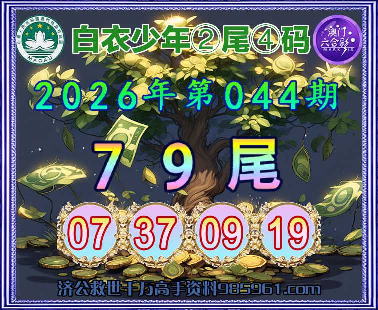 044期: 白衣少年 🧏♀️②尾④码🧏♀️【79尾主:07.37.09.19】开:19准