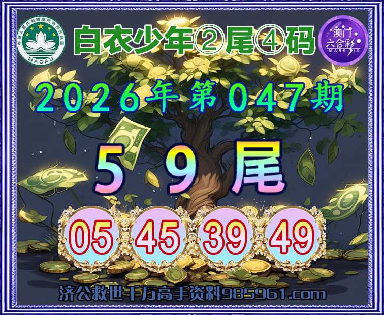 047期: 白衣少年 🧏♀️②尾④码🧏♀️【59尾主:05.45.39.49】开:39准