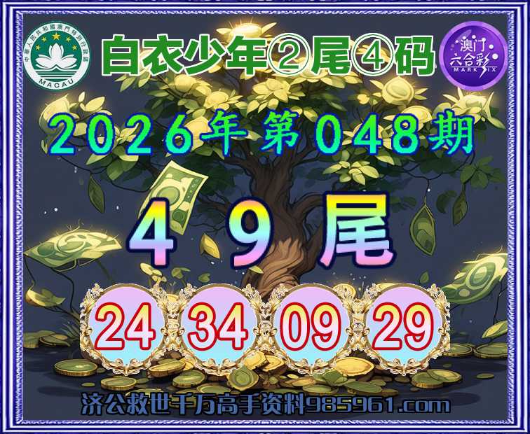 048期: 白衣少年 🧏♀️②尾④码🧏♀️【49尾主:24.34.09.29】开:24准
