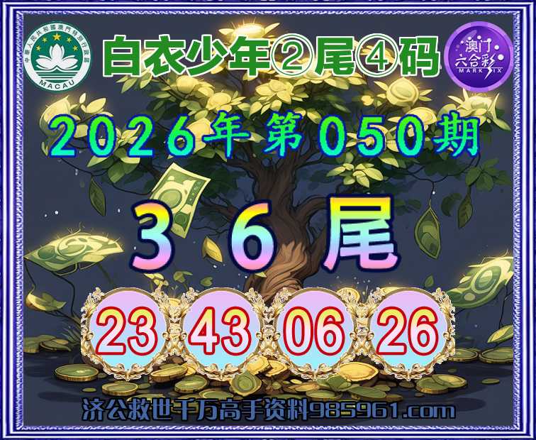 050期: 白衣少年 🧏♀️②尾④码🧏♀️【36尾主:23.43.06.26】开:23准