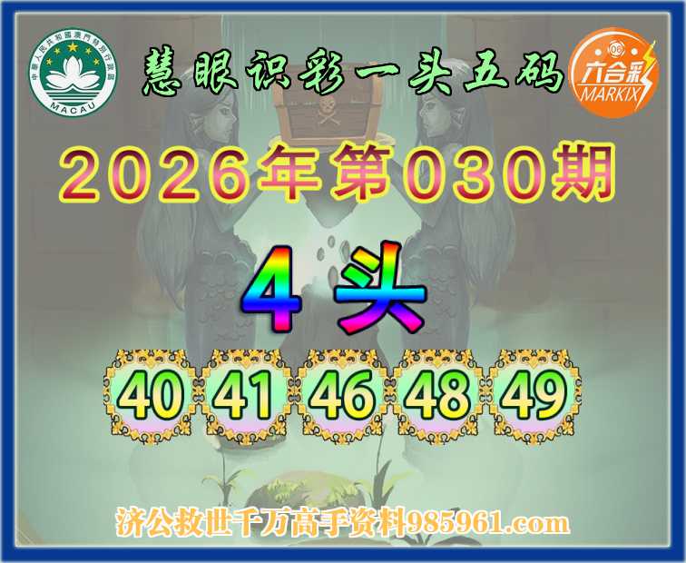 030期:〖慧眼识彩〗 🤘一头五码🤘【4头主:40.41.46.48.49】开:41准
